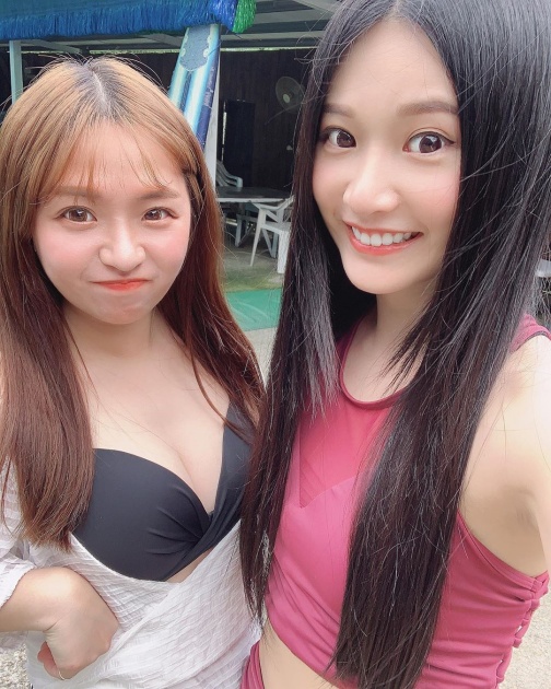 艾瑞絲經常在社群平台分享日常生活,日前在IG曬出一組和經紀人的日常工作照,沒想到卻辣翻大票粉絲!從照片中可以看到,艾瑞絲穿著粉紫色的背心式泳衣,雖然秀出一雙大長腿,不過大家的目光卻聚焦在經紀人身上,只見經紀人穿著黑色比基尼,胸前巨球又大又圓,配上一張可愛臉蛋,可說是童顏巨乳!
