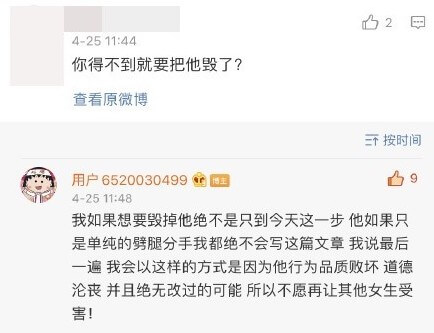 只是在25日時,有網友問她,「你是得不到就要毀了他嗎?」周揚青霸氣反嗆,「若我要毀掉他,絕對不會只有到今天這一步,他如果是單純的劈腿分手,我也絕對不會寫這篇文章!我說最後一遍,我會以這樣的方式,是他行為品質敗壞、道德淪喪,而且他絕無改過的可能!」還特別強調,「不願再讓其他女生受害」。
