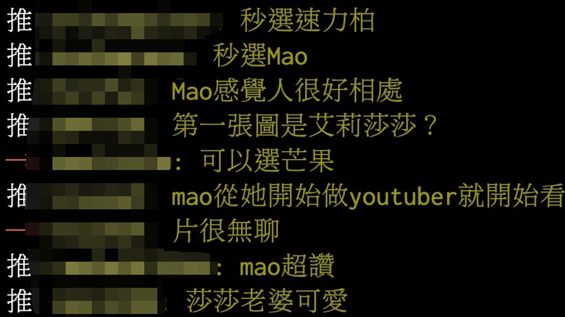 PTT照片一齣,立刻引起鄉民們關注,紛紛留言表示,「這誰??」、「愛莉莎莎好正」、「秒選速力柏」、「第一張圖是愛莉莎莎?」、「莎莎老婆可愛」。