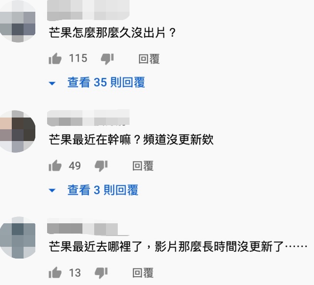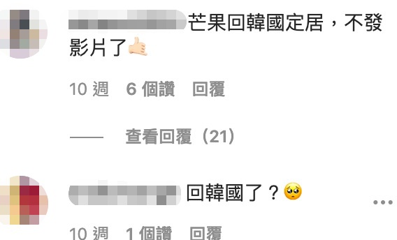 粉絲們紛紛湧進YT、IG下方留言表示,「好想芒果」、「希望芒果平安健康」、「好久沒消息了,怎麼了嗎?」、「希望能報一下平安」。同時也有許多謠言,有人傳出芒果回韓國定居,更有人指出她已經結婚生子,不過皆未有任何證據,各種傳言滿天飛,芒果至今仍未對此說明,粉絲也紛紛期盼芒果能早日現身報平安。