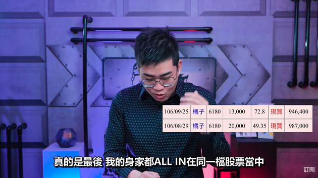Joeman分享他在2017年時,因緣際會之下聽到了遊戲產業的情報,對方表示某手遊在韓國上線後,該代理公司的股票瞬間飆高,隨後Joeman又觀察遊戲討論區的反應,因此決定將錢投進台灣的代理公司,一開始就花了260萬元買進,隨後陸陸續續又投了不少錢,幾乎將一半身家壓在這檔股票上!