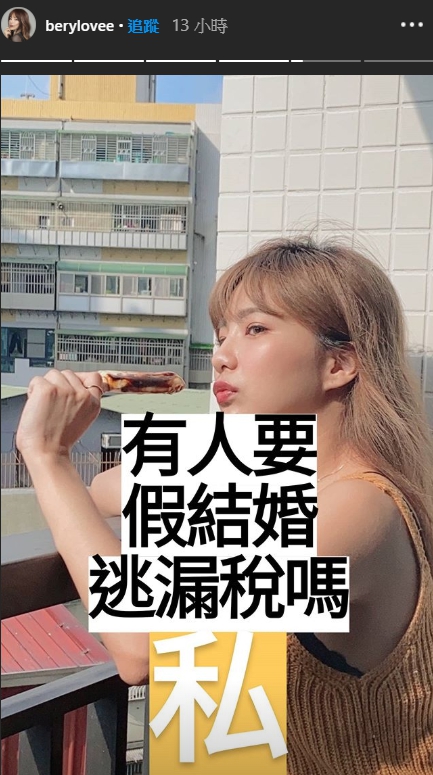 每年五月是報稅的季節,讓不少人感到相當頭痛,而身兼多種身分的貝莉莓,前幾天半夜時也趕緊整理報稅資料,沒想到隨後卻發出貼文,開始尋找會逃漏稅的人,準備來場假結婚!除了貼文,限時動態也發了同樣的文字,殷切期盼找人假結婚的模樣,笑翻不少粉絲。