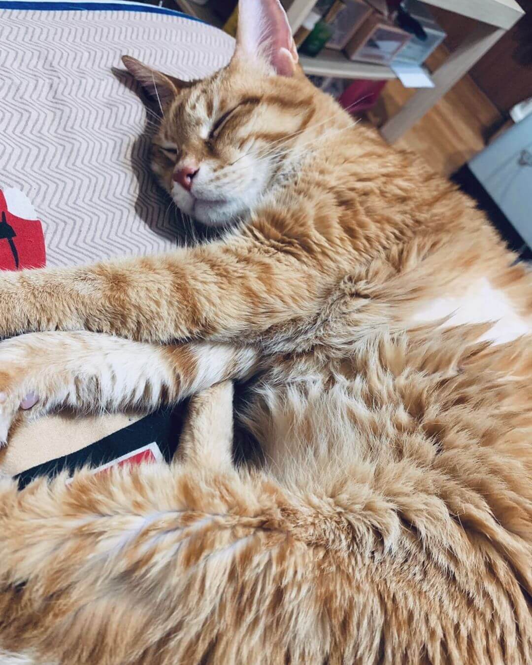 剛開始,橘子的狀況改善很大,原本幾天就得抽一次胸水,但後來居然一個禮拜才抽一次,到了後期根本沒有胸水需要抽,讓他感受到橘子求生意志非常強烈!但橘子已快17歲,身體狀況真的也是越來越不好...陳零九難過的說,「4月開始出現許多症狀,後腳無力、上床都要用爬的、上廁所無法控制、腸胃炎、沒食慾、換尿布碰到後腳會痛到對我們哈氣...」,於是他帶著橘子去看醫生,也做出了人生中的重大決定。