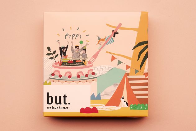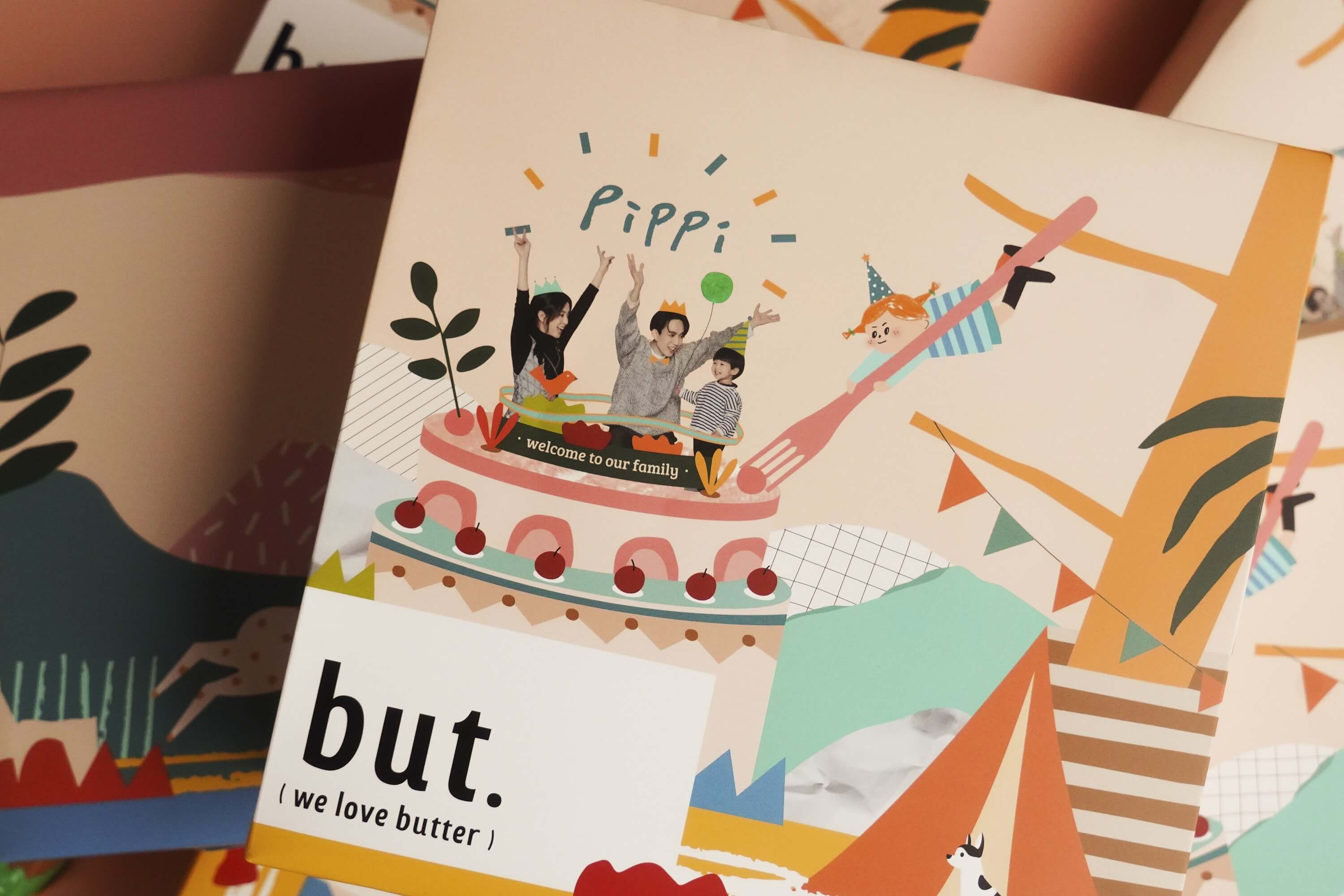 「Pippi」這個小名來自丁文琪喜歡的繪本《長襪皮皮》,因為媽媽丁文琪希望Pippi能像繪本主角一樣,將來是一位勇於冒險、有力量而又慷慨善良的女孩。but.(we love butter)也以此繪本元素設計這次的彌月禮盒,讓Pippi扛起了全世界最大的叉子,用最淘氣、古靈精怪的方式,大聲宣告與眾不同的Pippi來了!