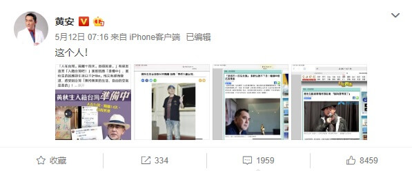 黃安在微博上發文貼出了一系列跟黃秋生相關的新聞,像是他打算要入籍台灣,還有他談到武漢肺炎疫情的事件,和他說港警瘋了,希望大家暫時別到香港...等言論,讓黃安不滿的在貼文內容中寫下,「這個人!」其他網友看了也都紛紛留言說,「他明明是條狗,哪裡是個人?」、「真是丟黃家人的臉啊!」