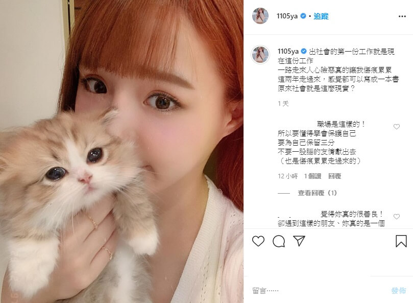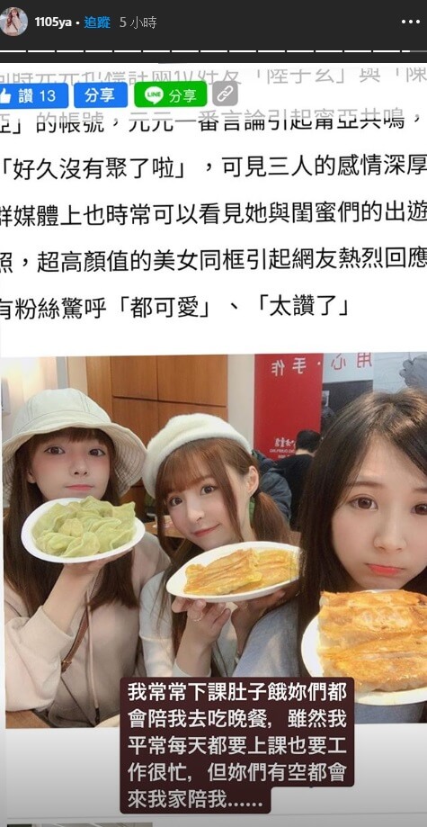 此外,元元17日凌晨還在IG發了一則貼文寫道,「出社會的第一份工作就是現在這份工作,一路走來人心險惡真的讓我傷痕累累,這兩年走過來,感覺都可以寫成一本書,原來社會就是這麼現實?」後來,元元也在限時動態PO了許多以前跟姊妹們一起生活的照片,感嘆這些事情發生得太突然,自己也無法接受。
