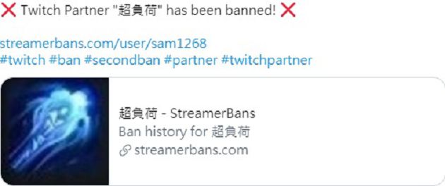 日前,超負荷的Twitch頻道慘被官方封鎖7天,原因在於他在遊戲實況中和被Twitch永久封鎖的黑名單對象互動。消息曝光後被輾轉分享到遊戲大亂鬥論壇,引來網友熱議,大部分的網友表示被BAN也好,開台時數極長的超負荷剛好可以好好休息7天。同時,也有部分網友認為Twitch的BAN台機制十分不明確,氣憤地替超負荷打抱不平。