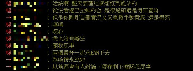 另外,超負荷慘被BAN的消息也在PTT上被網友熱烈討論,大部分網友都給予超負荷負面評價,「乾我屁事」、「活該阿,整天要理這個想紅到處沾的」、「兩個最好一起永BAN下去」、「以前還會有人討論,現在剩下噓關我屁事」、「不懂知恩圖報被ban剛好」、「玻璃大砲型實況主,消費我最行,一碰碎滿地」、「可憐哪」、「玻璃雙標仔」、「超負荷跟圖奇一次噓兩個,划算」、「BAN7天,損失7天廣告錢而已,還好吧」。
