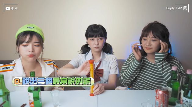 本本近日開啟「酒精流氓」系列,找來YouTuber好友邊玩遊戲邊喝酒,最新一集影片中,本本找來韓系代表「愛莉莎莎」、「阿圓」拚酒,同時也特地準備韓國燒酒,讓兩位YouTuber喝到飽!從影片中可以看到,三個人先從深水炸彈玩起,恰巧各罰一杯,結束第一回合。