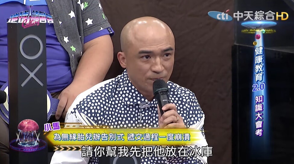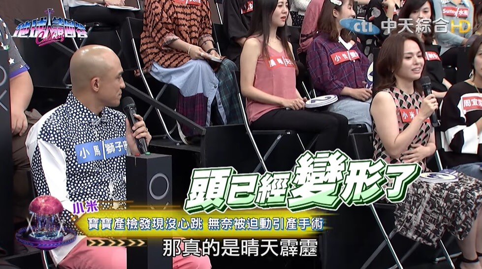 小馬跟他老婆最近上《地球人請回答》節目,當主持人胡瓜問到有沒有人有「人工流產」的經驗,小米(小馬老婆)就透露,「當時懷孕五個月左右,滿心歡喜去產檢,沒想到醫生卻說寶寶沒有心跳了,還跟他們說胎兒『頭已經變形』」,讓他們兩人從天堂掉到地獄,遲遲無法面對這個事實。
