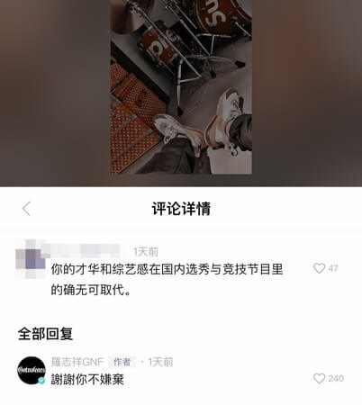 最近有不少網友留言問「豬哥最近都在做些什麼?」沒想到,羅志祥居然回應了網友的留言說,「反省」,讓大家都非常驚訝!後來也有網友鼓勵他,希望他可以趕快振作起來重新復出,「你的才華跟綜藝感在選秀節目中無可取代」,讓他也感動地回說,「謝謝你不嫌棄」。雖然本人在網路上出面回應網友們的留言,但是依然可以感受到他目前低落的情緒。