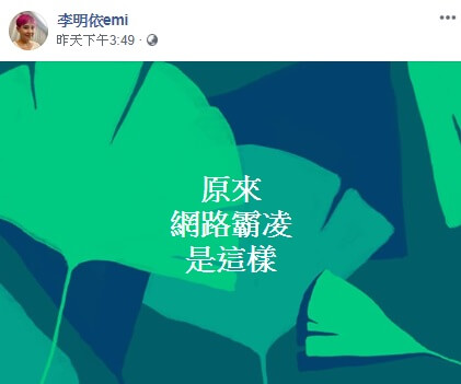 後來因為留言的網友幾乎都是在說高雄跟韓國瑜的事情,讓李明依忍不住在貼文底下統一回覆說,「請問哪裡有寫「高雄」.....你們非要跳進來對號入座,然後不分青紅皂白再瞎霸凌!請問,你們幫到高雄了嗎?」並且告訴網友們,她根本沒有在說高雄,覺得大家在霸凌她,還特地發文說,「原來網路霸凌是這樣!」