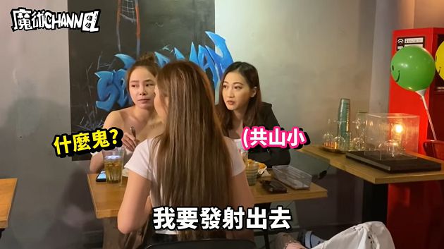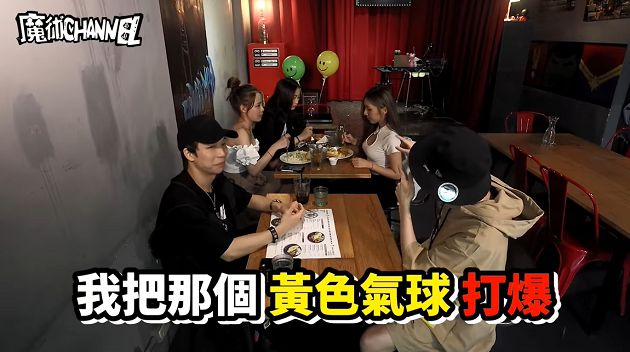 隨後泥泥學姐便挺著「又大又圓」子彈胸進場,結果沒多久就卻被超能力「射爆」,長輩瞬間消風,泥泥學姐也配合表示,「很痛!我才剛做好的,我要回診所了」,三人一搭一唱的表演,讓隔壁桌的女孩笑到無法自拔,整人企劃大成功!