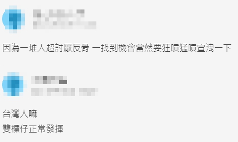 Dcard文章一出,引來不少網友回文表示,「台灣人嘛!雙標仔正常發揮」、「因為一堆人超討厭反骨,一找到機會當然要狂噴猛噴宣洩一下」、「台灣人雙標本性穩定發揮」、「形象問題」、「反骨比較紅」、「人紅是非多」。
