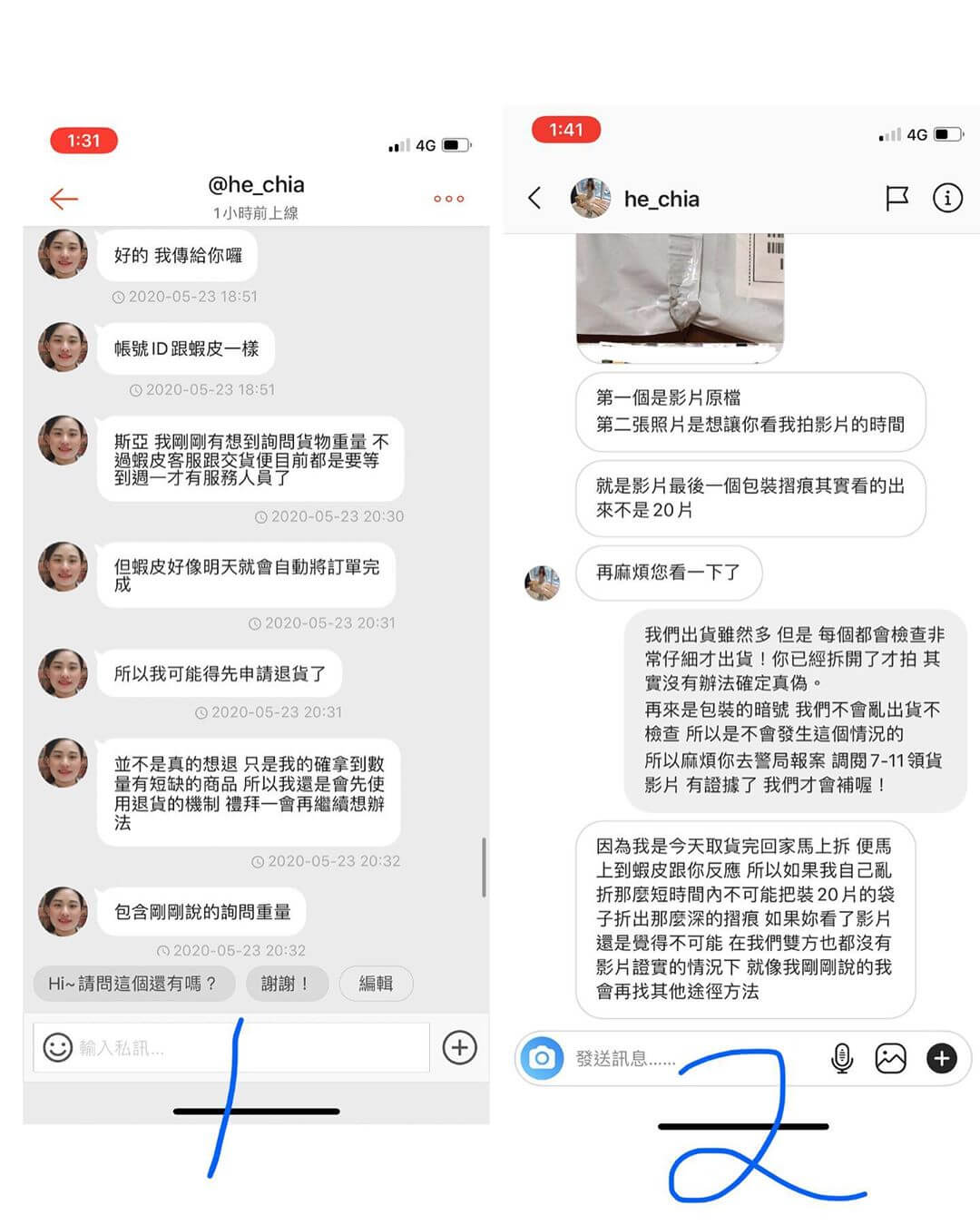 斯亞最近在IG上發文指控面膜的買家,原因是當初對方說「訂購了20片結果只收到2片面膜」,但又無法拿出開箱影片、超商取貨的畫面,或是報警備案當作證據,後來則是直接從網路平台上申請「無條件退款」,也一直跟斯亞解釋自己「沒有騙人」,但斯亞仍然懷疑對方在欺騙,並且直接嗆對方,「2片跟20片的差異會分不出來?你是有重度近視還是重大殘疾?」
