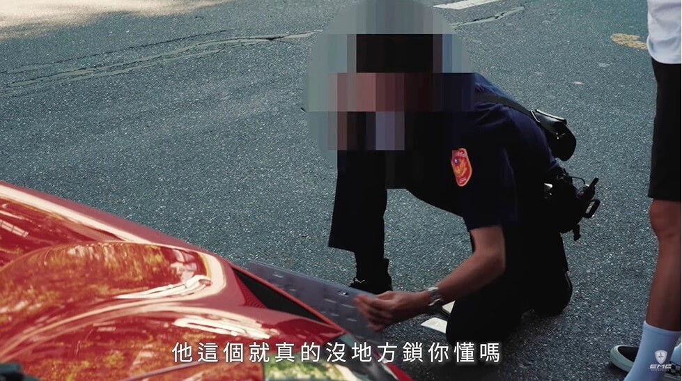 警察整個無奈地繼續說明會請拖吊車來處理,讓Ryan一聽馬上回說,「那你看他敢不敢吊走」,警察也看出車體結構上並沒有可以掛車牌的地方,很明顯少了零件,Ryan則是站在旁邊笑說,「剛好遇到疫情問題,我叫好久的貨了,兩個多月,我知道你很盡責啦!」後來警察則是通融放行。