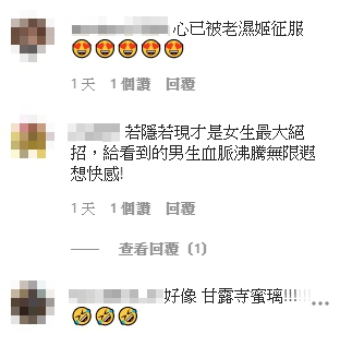 而「處男殺毛衣」辣照貼出後,立刻引來許多人紛紛讚嘆表示,「太性感」、「屁股好養眼」、「心已被老濕姬征服」、「好像甘露寺蜜璃」、「太有感覺了,有殺到」、「配這個頭髮真好看」、「米砂側露太多了」、「第一張乍看好像公仔喔」、「處男都被殺光光了」。