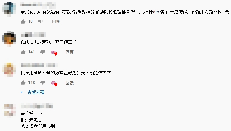 反骨影片一出,立刻有不少網友回應,「看的出來孫生對少安很有愛」、「蕾拉女兒可愛又活潑」、「爆走小孩!!可愛」、「蕾菈除了工作還很顧小朋友阿」、「蝶蝶真的好可愛,英文程度真的也很厲害」、「其實眼神可以看到媽媽驕傲的表情」、「媽媽教的真好」、「好喜歡這集喔!!親子娛樂!」。