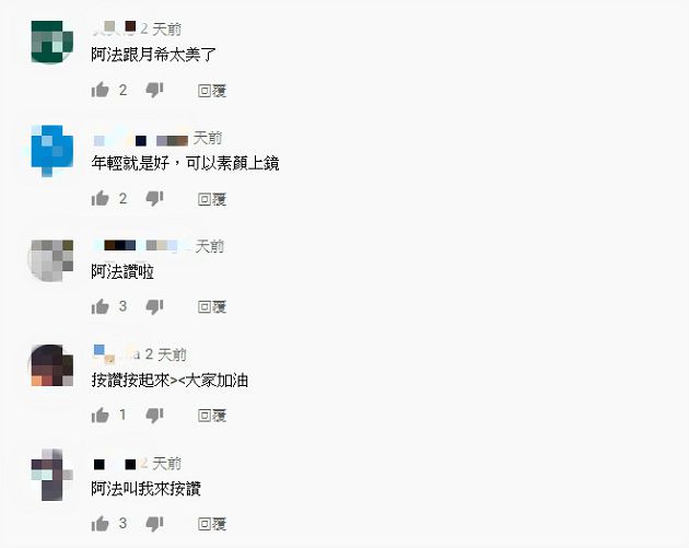 影片曝光後吸引不少粉絲討論,直呼「阿法素顏也好好看,開台加油」、「阿法讚啦」、「按讚按起來!大家加油」、「阿法跟月希站在一起有最萌身高差誒」、「阿法呆呆蠢蠢的,但還是很可愛」、「阿法跟月希太美了」、「好香好香的阿法呢!天使芳宇」、「法寶們讚起來!」、「年輕就是好,可以素顏上鏡」。同時,阿法本人也現身留言區表示「沒睡的黑眼圈好慘QQ下次我會化妝的」。