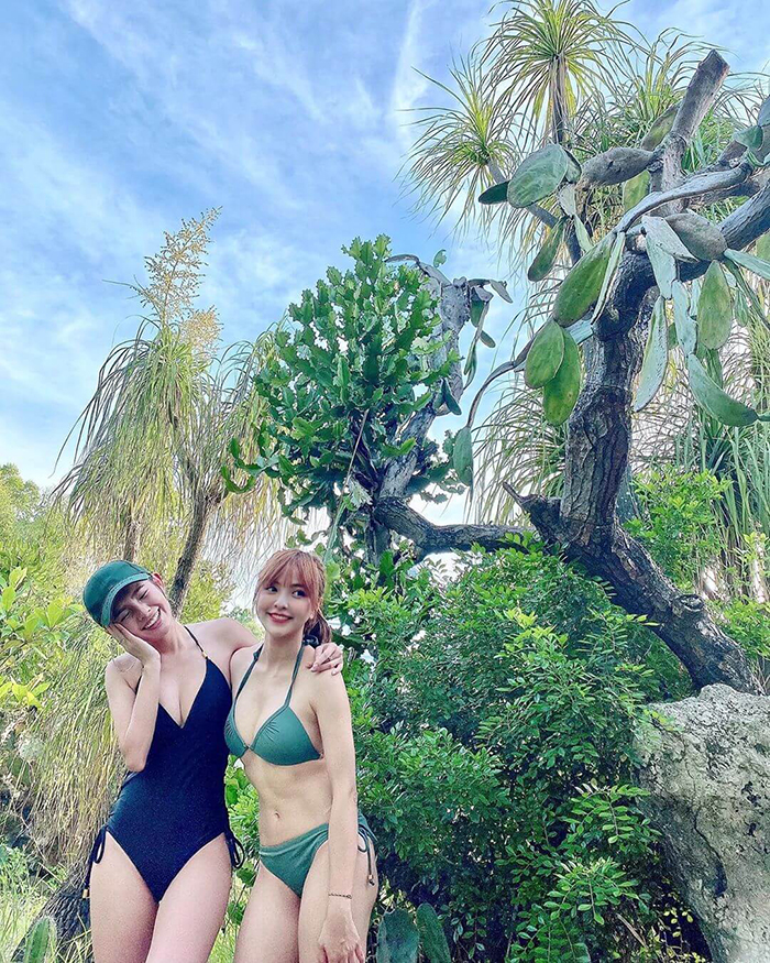 凱希最近在社群平台上發文曬出穿著比基尼的美照,並在貼文內容中寫道,「好久不見的愛玩客~」,讓粉絲們都知道她最近參與愛玩客的節目錄製,而且從照片中可以看到,凱希穿著綠色的比基尼,和一起出外景的鮪魚一起跟身後那一片綠油油的植物背景拍照,大方展露罕見的身材曲線!