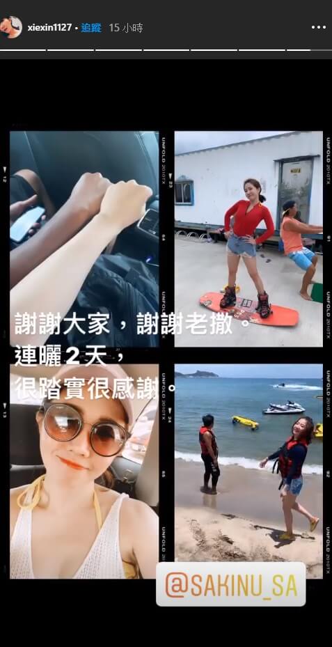 而謝忻28日也在IG上秀出了自己的比基尼辣照,並在貼文內容中寫下,「久違的外景日常在夏至過後的東北角海岸展開~『好好享受陽光、享受夏天吧!你不是最喜歡外景了嗎?』我對自己說。於是我笑容滿面,自信又勇敢!」讓大家感受到她重拾自信,回歸自己最喜歡的外景工作,「我,是一輩子的外景人,艷陽下睽違已久的外景人生,內心深處再次被喚起的外景魂!」