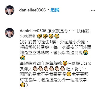 讓西瓜哥哥在貼文內容中寫道,「原來就是你~~快給我出來面對!我以前真的是住1樓,外面是小公園,超級常被按電鈴,每一次衝去開門外面總是空空蕩蕩的,害我以為遇到鬼!」西瓜哥哥也對於事隔將近20年總算解惑感到開心,「只能說Dcard真偉大」還不忘跟網友們透露,「對了,開門的是我不是我哥哥喔!我哥哥那時在當兵(還是這是另外一個鬼故事)」。