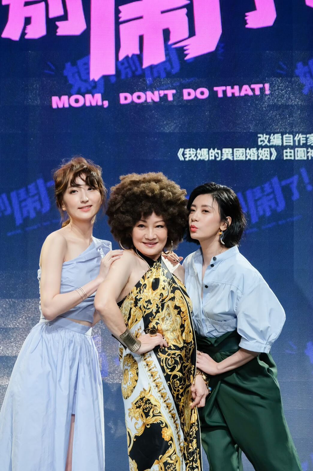 由金鐘導演陳慧翎及金鐘剪接李俊宏共同執導的影集《媽,別鬧了!》在7月1日舉辦卡司發布記者會!這部影集特別邀來了10年未曾參與戲劇演出的比莉姐飾演勇敢追愛的媽媽,而兩位女兒則由賈靜雯、柯佳嬿飾演!比莉姐一登台就馬上告訴大家自己是「兩個天后的母親」簡稱「天母」,笑翻眾人!而該劇也是賈靜雯首次擔任製作人並身兼演出,預計將在明年上檔!