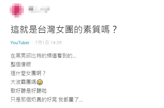 黑男的影片除了在YouTube頻道引發關注以外,也有網友轉發到Dcard討論,認為這個女團讓人傻眼,「這就是台灣女團的素質嗎」?文章一出,立刻有許多人回應,一部分認為還是日韓團好,不過也有人十分支持,期待接下來還能看到女孩們合體。