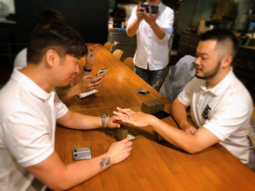 此外,這對登記結婚的新人,因為在戶政事務所登記時,不知道什麼時候才可以交換戒指,所以就等到吃早餐的時候,才在店裡面進行交換戒指的儀式,陳鎮川也在IG上寫道,「不可能一邊吃早餐一邊交換戒指吧!」不少網友們看了都紛紛留言表示,「這麼生活感的交換」、「有在哭耶」、「好浪漫!」。