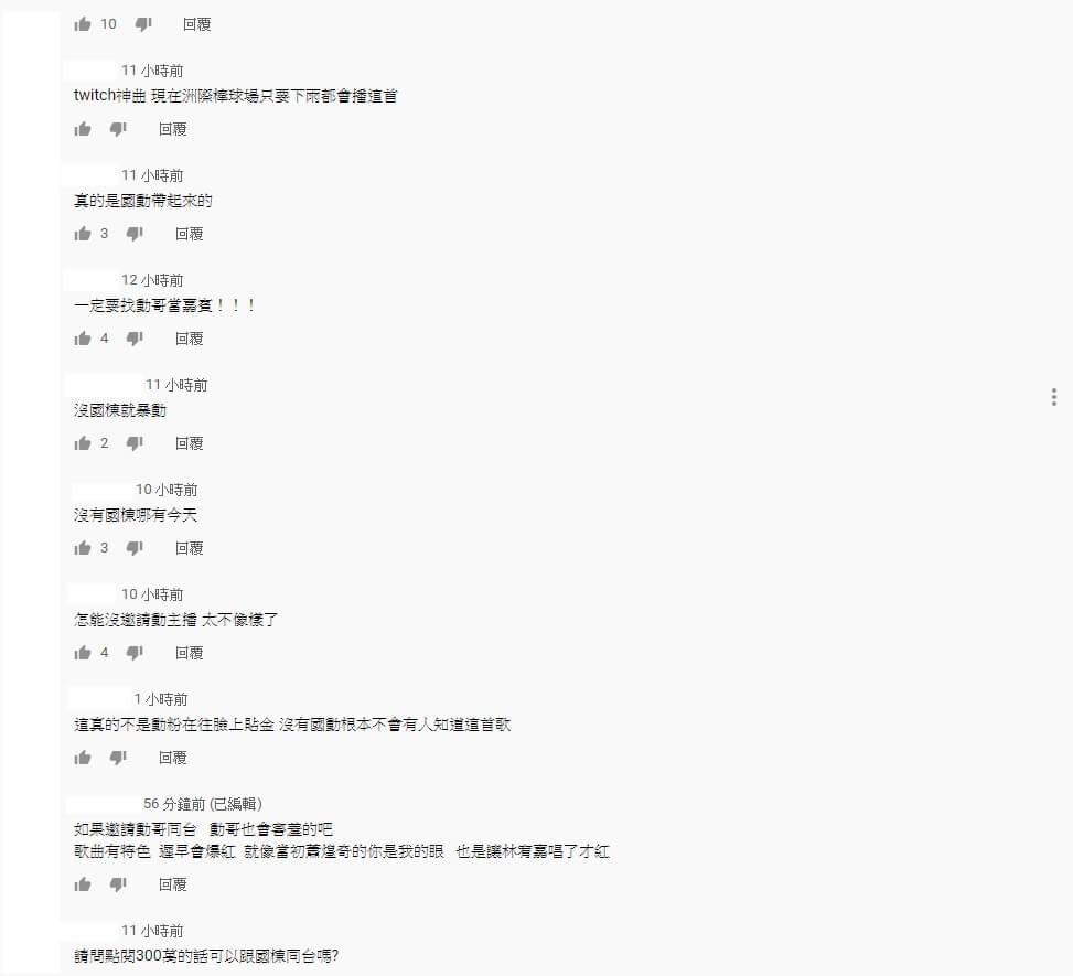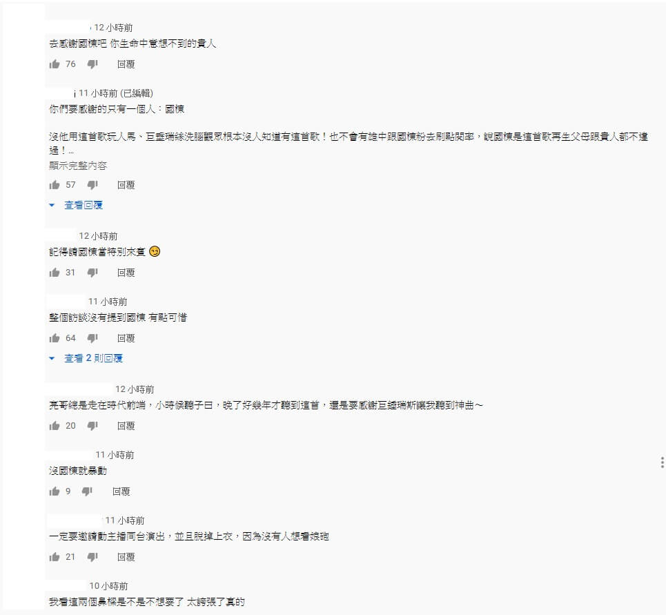 不少網友在這首歌爆紅之後,都紛紛湧入《怎麼還不睡?》節目底下留言表示,「去感謝國棟吧!你生命中意想不到的貴人」、「你們要感謝的只有一個人:國棟」、「記得請國棟當特別來賓」、「整個訪談沒有提到國棟,有點可惜」、「沒國棟就暴動」、「我看這兩個鼻樑是不是不想要了,太誇張了真的!」、「可以改編一下再和國動出一支MV嗎?」、「爆紅關鍵除了國棟還有什麼?結果都沒提到」、「會紅還不知道感謝我們動哥,不然鬼知道這首歌」。