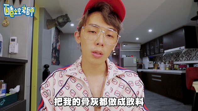 網紅「酷炫」是人氣團體「反骨男孩」的團長兼導演,以搞笑幽默的言行風格深受粉絲喜愛。日前酷炫在個人頻道上傳新片,公開自己的遺書內容,除了說出對家人的感謝以外,同時也貫徹反骨精神,直呼喪禮上要讓所有成員喝下他的骨灰飲料!