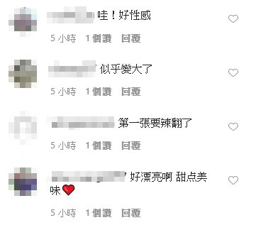 艾瑞絲照片一出,立刻引來上萬人按讚,同時紛紛留言表示,「腳看起來真香」、「這個腿真的很可以」、「比甜點還甜」、「衣服穿太少辣,趕快穿衣服」、「穿這樣又性冷感真的會迫死男友」、「似乎變大了」、「哇~好性感」、「超可以!」、「是天上掉下人間的天使」。