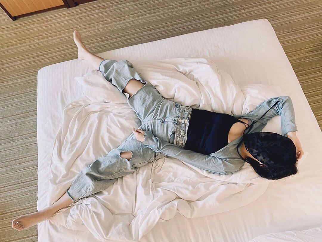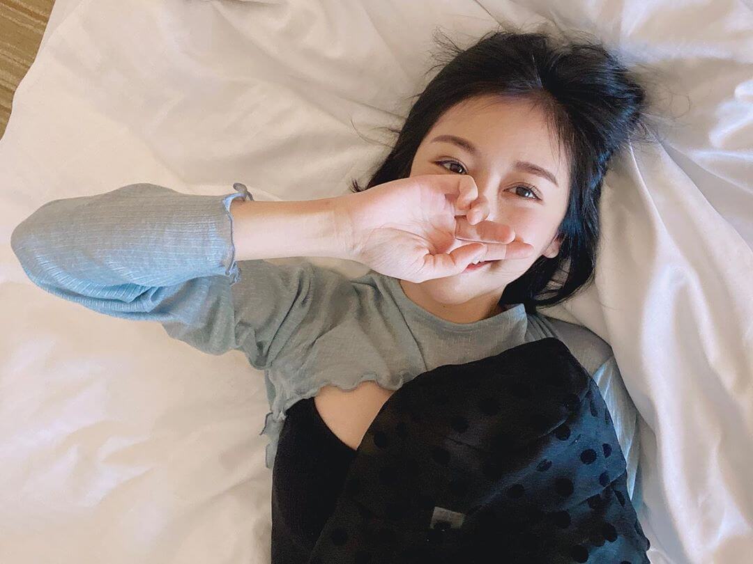 此外,Albee也有在房間拍了一系列的照片,除了對鏡頭露出甜美笑容之外,也在床上拍了各種角度的照片,其中一張照片是她非常豪邁的躺出一個「人」字模樣,不小心露出了北半球,被許多粉絲稱讚,讓Albee驚訝的說,「有人說他以為是背肌!」而被網友問到「這什麼短歪的上衣!」時,Albee也回應對方說,「布料不夠,加減用一下啦!」看到她跟其他網友之間的可愛互動,讓粉絲們都紛紛按讚支持她穿這種性感的衣服。