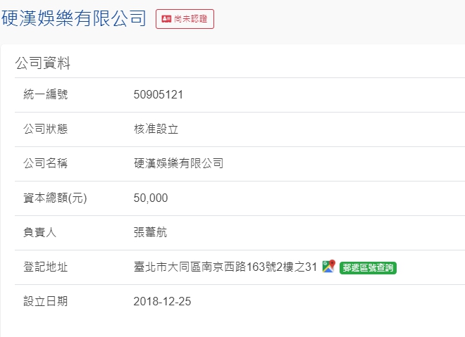 國動日前在粉專上宣布,創立「硬漢娛樂」資本額50000,並且請來第一位正職員工「周正飽」,以後可以改叫他為「張董」!而從公司登記查詢中也能發現,國棟確實成立了該公司,且為該公司負責人,不過公司其實早在2018年設立,並非近期才創立。