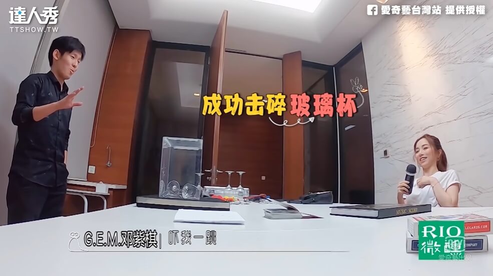 歌手鄧紫棋(G.E.M.)從出道以來,就憑著自己的嘹亮音色、廣闊音域與超強唱功聞名,甚至還紅遍全亞洲!而她也在走紅之後,開始參與中國各大綜藝節目的錄製,像是她最近上了陸綜《我要這樣生活》,在節目中跟魔術師學習變魔術,並且運用聲音讓東西移動,不料她的聲音竟把玻璃杯給震破了,讓所有人嚇到說不出話來!