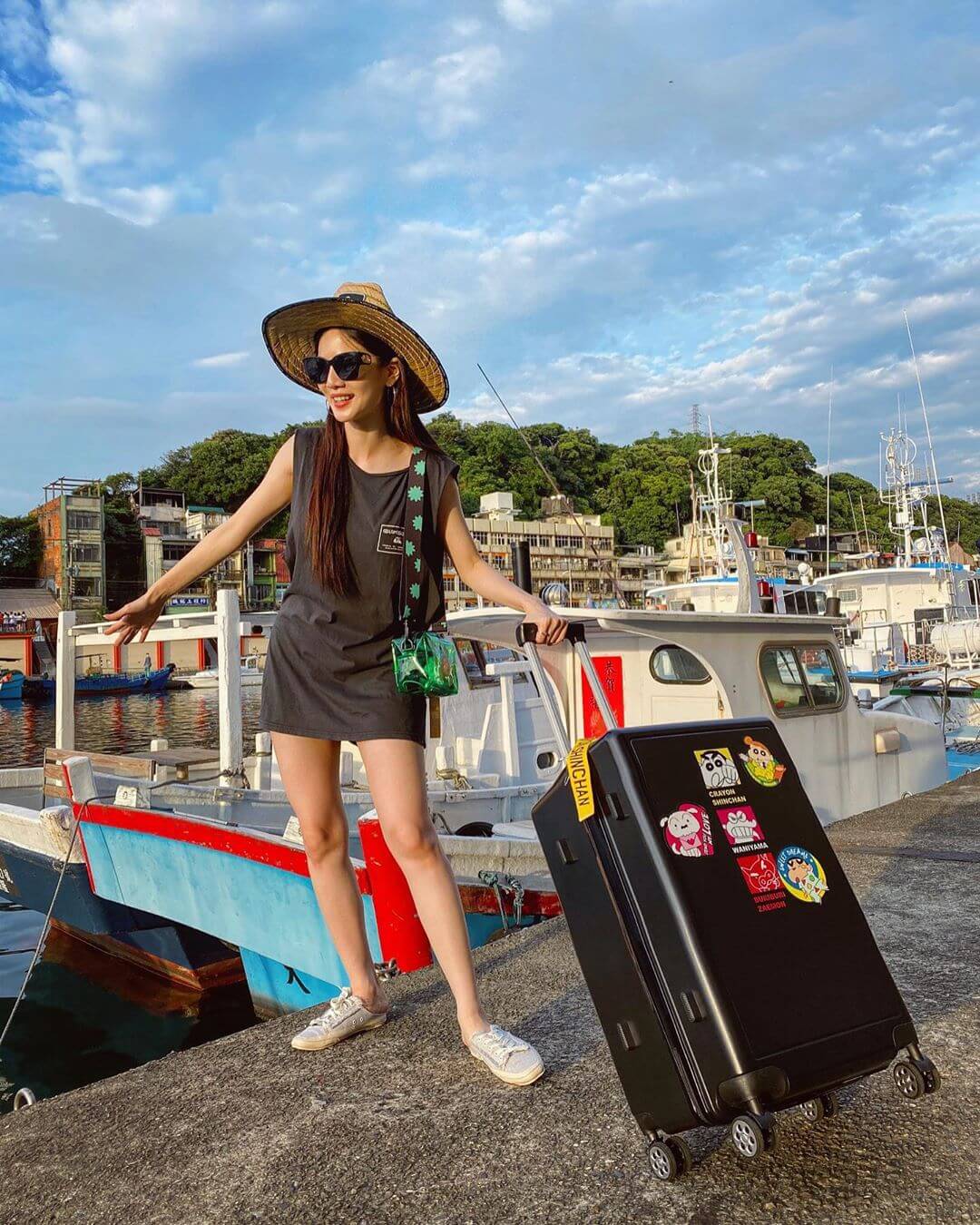 曾之喬最近PO文曬出了自己在漁港拍下的美照,並在貼文內容中寫道,「為這美美的景色和行李箱跳支舞吧!」從照片中可以看到,她一身穿著連身灰裙,露出白皙長腿及纖細手臂,再搭配草帽,並且拖著一個大行李箱,在漁港旁悠閒地的拍照,讓網友們都覺得她是不是想出國想瘋了XD後來才發現原來她其實是在替屈臣氏的集點商品做宣傳!