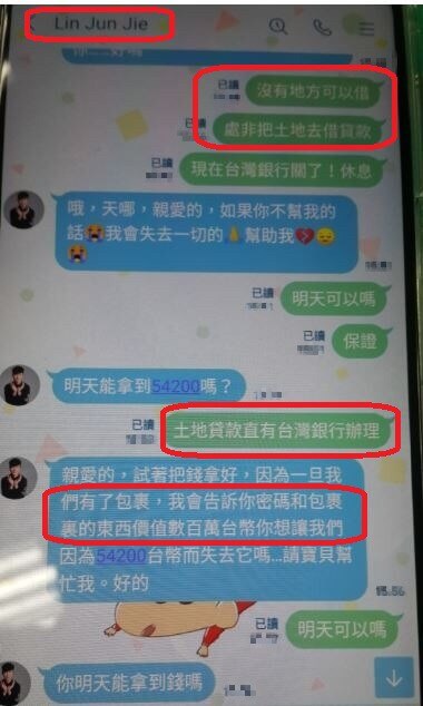 後來「假JJ」跟陳女表示,他寄了價值高達百萬的包裹要給她當見面禮,只是現在卡在海關,無法順利出關,需要陳女幫忙匯款繳納5萬4200元的稅金,才有辦法送到她手中!接著,「假JJ」再假裝是貨運客服,不停跟陳女催款,讓她被逼得很著急,但手邊又沒錢,只好在8日趕緊拿著長輩給她的土地權狀,跑去埔里的台銀申請貸款!