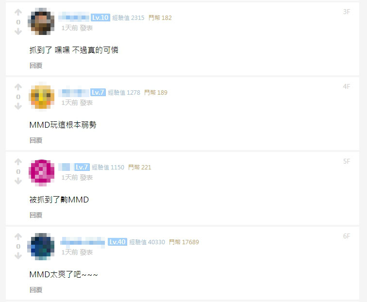 另外也有人將影片剪成精華,放上遊戲大亂鬥論壇,其中一則精華裡可以看到,MMD在抓氣球遊戲時,誤抓了JOJO的屁股,頓時跪下認錯讓聊天室掀起一陣喧鬧,網友表示:「抓到了 嘿嘿 不過真的可憐」、「MMD玩這根本弱勢」、「被抓到了齁MMD」、「MMD太爽了吧」。