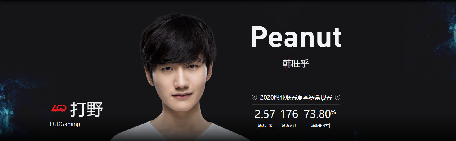 電競選手「Peanut」韓旺乎,現為英雄聯盟戰隊《LGD》的韓援,擅長位置是打野,在2014年曾經超越知名選手「Faker」登頂韓服單排第一,同年他也正式踏入職業電競圈。近期Peanut遭粉絲不斷性騷擾,最後透過法律途徑尋求幫助。