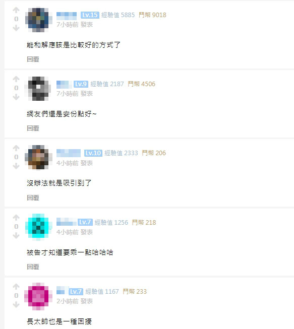 消息曝光後,有網友將該則事件轉貼到遊戲大亂鬪論壇,粉絲紛紛留言表示:「能和解應該是比較好的方式了」、「網友們還是安份點好~」、「沒辦法就是吸引到了」、「被告才知道要乖一點哈哈哈」、「長太帥也是一種困擾」。