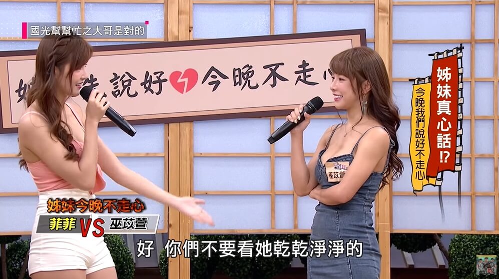 接著,菲菲又爆了另一個猛料說,「我剛進啦啦隊時,苡萱剛當上隊長,有一次我跟她出去玩,結果她突然在廁所說『菲菲你過來一下』」,當下菲菲以為苡萱MC來,可能需要幫忙拿東西,結果居然是「叫我進去幫她搓澡還有搓腳!」讓現場來賓聽了都傻眼說,「根本濫用職權、職場霸凌啊!」巫苡萱趕緊解釋,「當時剛跳完啦啦隊,我手真的舉不起來,剛好我們住同一間才會找她幫忙!」