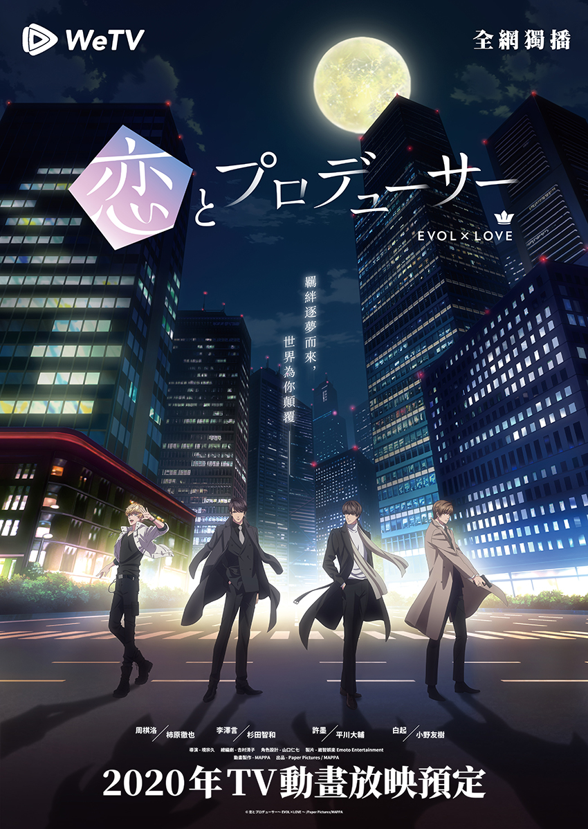風靡全世界女性的戀愛手遊《戀與製作人》宣佈推出動畫版將在15日於騰訊視頻海外版WeTV獨家播出播出,動畫將由日本知名動畫公司MAPPA製作,且將還原遊戲內的「EVOL」世界觀,動畫的片頭曲《晨昏》由知名歌手胡夏演唱,片尾曲《夢想啟程》則由有四千年一遇美女之稱的鞠婧禕演唱。