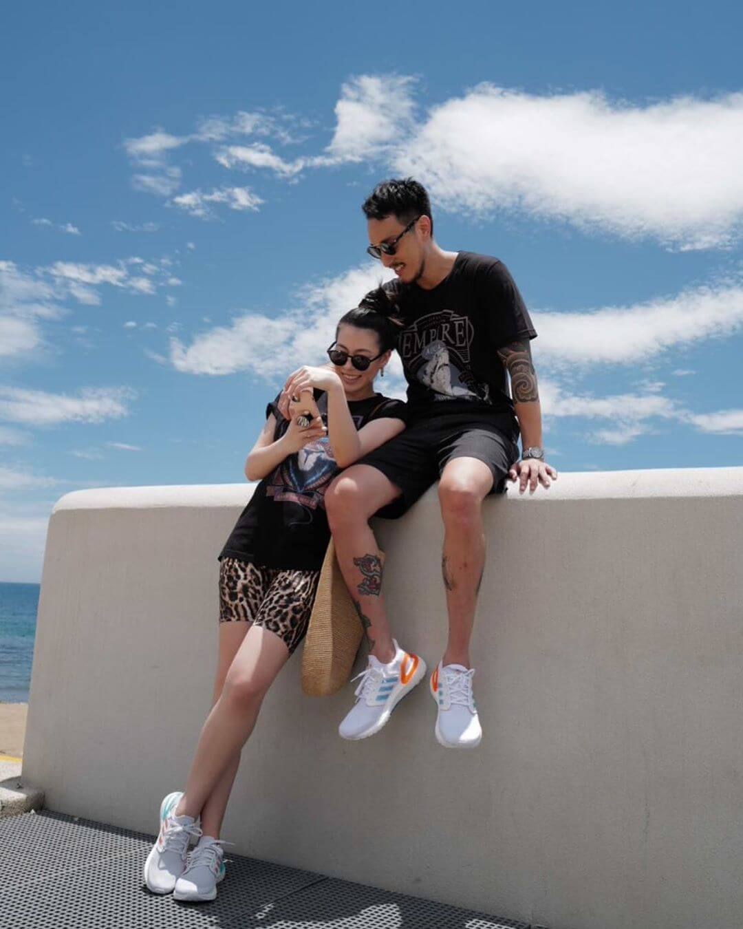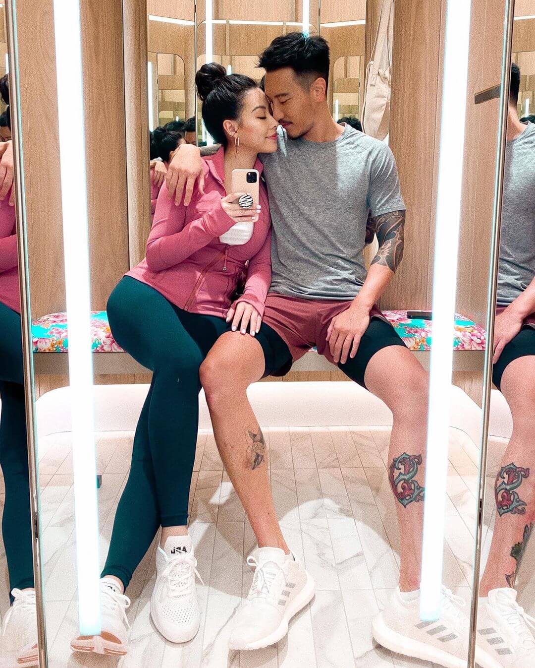 王陽明跟蔡詩芸兩人最近一同在IG貼出閃照,並在貼文內容中寫道,「現在都沒什麼時間約會,也只能在活動的更衣室放閃一下,墨鏡準備好了嗎 ?」、「猜猜我們在更衣室在幹嘛? 」讓不少粉絲看了都驚訝不已!從照片中可以看到,蔡詩芸穿著粉色外套搭配白背心,下半身則穿著藍綠色運動長褲配上運動鞋,還不忘小露性感事業線。