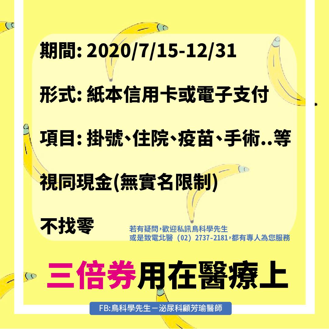 三倍券除了能在北醫體驗「超快感」外,也可以拿來支付掛號費、住院費,甚至部分負擔、健康檢查、打疫苗、醫美都可以使用!但是衛福部表示,各家醫療院所皆可自行決定如何收取三倍券,如果民眾欲拿三倍券前往使用時,最好先詢問清楚該院所的使用規則,才不會引起不必要的紛爭。