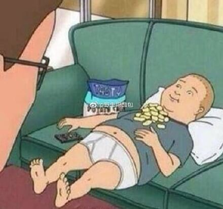事實上,鮑比不只盤坐的「佛系梗圖」得到網友青睞,他許多在動畫裡讓人哭笑不得充滿問號的舉動,也都紛紛被做成表情包,尤其有一幕鮑比貪吃,癱躺在沙發上看電視的一幕,也廣受粉絲歡迎。