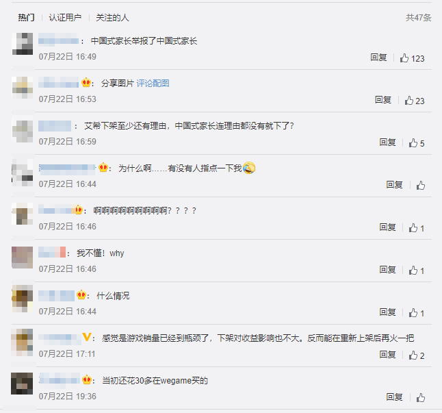 消息曝光後,眾多玩家隨即在《中國式家長》的微博上向官方討要說法,但官方並沒有回覆這些玩家的問題,許多玩家紛紛在底下留言寫道:「中國式家長舉報了中國式家長!」、「中國式家長連理由都沒有就下了?」、「我不懂!為什麼?」、「快給我說說,哪裡觸犯到天條了,咋下架了」。