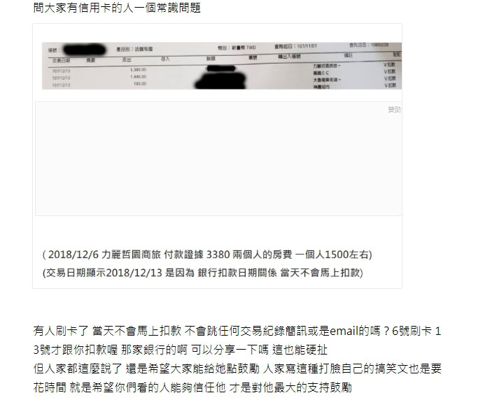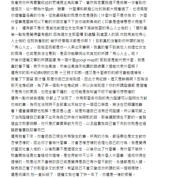 影片曝光後,有人將其剪成精華轉貼至遊戲大亂鬪論壇中繼續延燒,男女雙方的觀點都各自有網友擁護,但男方提供的多項證據都被人提出許多疑問,如刷房間的卡費為何會在不同日通知,且訂房資料不一定需要本人在場也可填寫女方姓名,種種跡象都顯示情況趨近於法院判決。