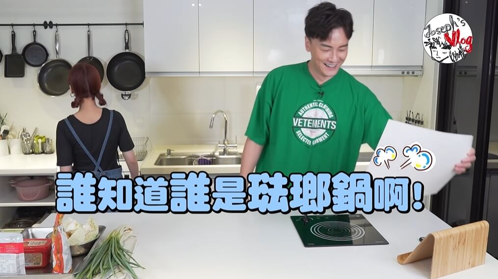接著,兩人開始認真要備料,不過楊丞琳完全不知道所謂的「琺瑯鍋」是什麼,在鏡頭前不斷的求救,直到鄭元暢整個看不下去,便跟楊丞琳一邊鬥嘴一邊拿了個鍋子給她用,楊丞琳自己也透露,「我家廚房是樣品屋的狀態!你不要這樣,別說那些瞧不起我的話!」可見兩人感情真的很好,才可以這樣邊下廚邊吵架XD