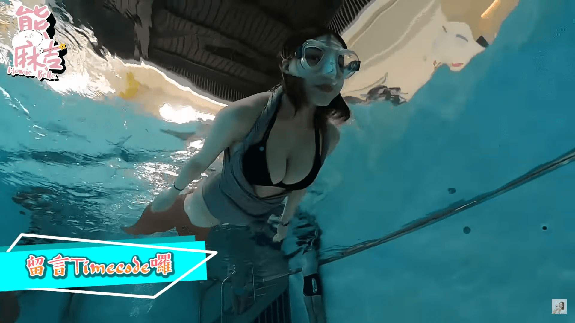 從影片一開始,可以看到熊熊穿著人魚蛙鞋游泳的畫面,波濤洶湧直接衝向鏡頭,整個超養眼!熊熊開頭就透露,這集點閱率絕對會爆~大夥兒在經過課前熱身及wave訓練後,很快的也開始下水學習,其中在沉水訓練時,林真亦不斷波動右手,沒想到因為靠熊熊太近,整個頻頻彈到她的雙峰,讓熊熊馬上跟教練告狀,「她一直再打我胸部!」讓大家笑成一片。而教練則開玩笑的回說,「她在幫大家謀福利~」在經過練習後,大家都成功游出曼妙的人魚姿勢,熊熊也讚嘆這次美人魚課大成功!