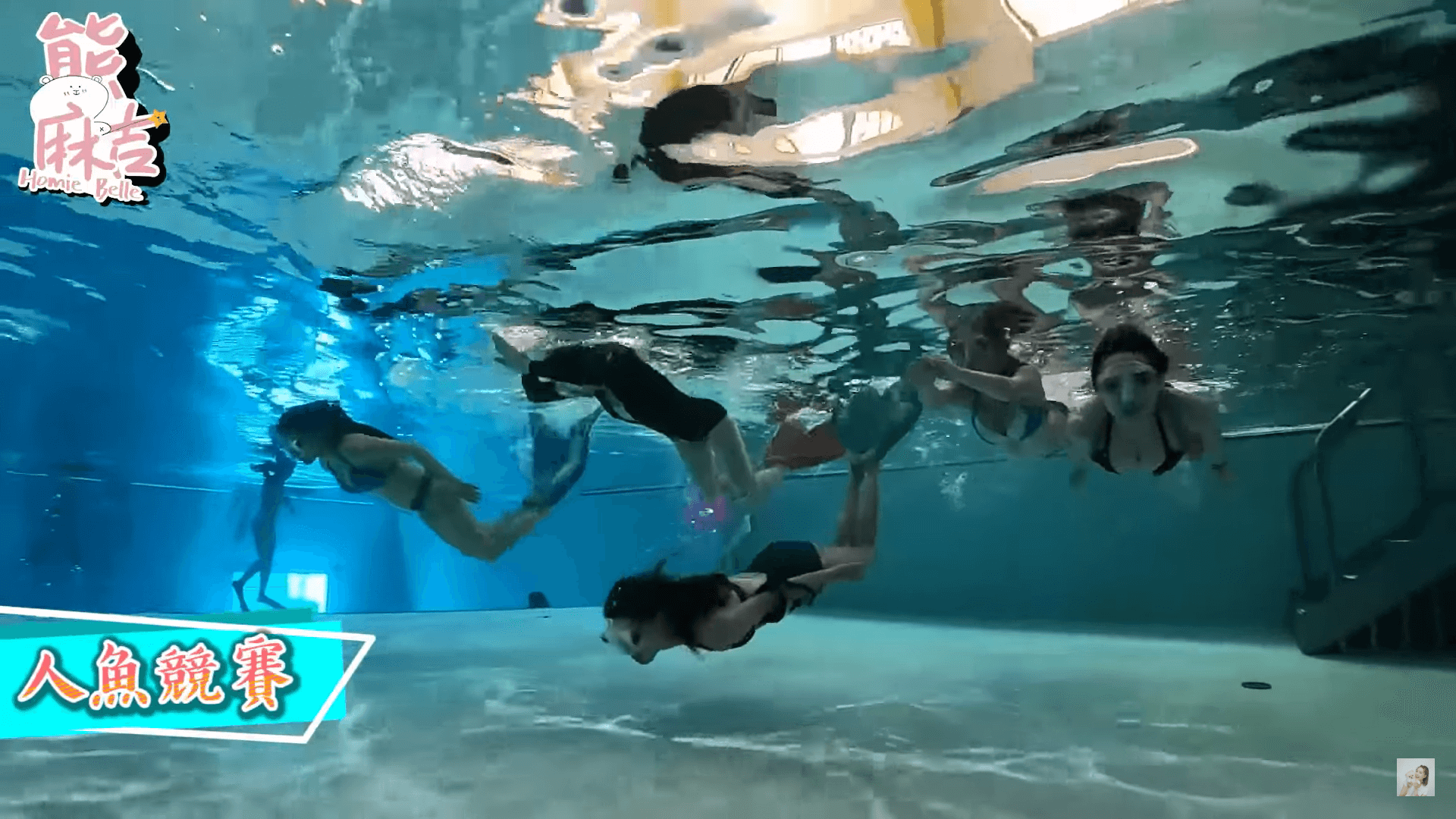 熊熊最近開設了Youtube頻道,其中有一個單元叫「熊麻吉」,在最新上傳的新片中,她也特別邀請到好友宛宛兒、安于晴、邱慧雯、林真亦、喜多、Bella一同來體驗一下在水中當「美人魚」的感覺,在這一集節目中,可以看到滿滿的比基尼,大家在泳池裡面都會穿上人魚的尾巴,在水中利用身體的協調性,讓自己可以游出像人魚一般的姿勢,讓網友們看了都忍不住直呼,「影片太短不夠看啦~」